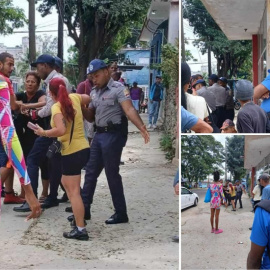 Abuso policial en #LaHabana en el Día de los #DerechosHumanos Hoy en la capital cubana un hombre iba caminando junto a su esposa y su mamá cuándo de pronto observó que la policía estaba abusando de un anciano que habían arrestado porque estaba vendiendo unos productos para sobrevivir. El joven se les acercó y les dijo que que estaban haciendo, que eran unos abusadores con el señor mientras a los delincuentes y los vendedores de Kimico no les hacían nada. Ahí los Represores de la PNR arremetieron contra el hombre a golpes y patadas, las personas que se metieron a defenderlo les dieron golpes y les rociaron spray de pimienta en las caras. Al final fue tal la brutalidad Policial que hasta rompieron la puerta del microbús de la policía de la violencia con que lo metieron dentro. Esta es la Dictadura que mientras se erige ante los organismos internacionales en defensora de los Derechos Humanos, reprime, arresta, tortura y abusa de los Cubanos. #ProhibidoOlvidar #EnCubaHayUnaDictadura