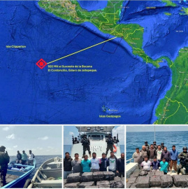 El Salvador le asesta un duro golpe al narcotráfico.   Efectivos de la Marina Nacional de El Salvador interceptaron una embarcación con tres narcotraficantes de nacionalidad guatemalteca, quienes manifestaron que esperaban un cargamento de cocaína a 507 millas náuticas al suroeste de la Bocana El Cordoncillo.   Luego, una segunda embarcación con tres guatemaltecos se aproximó al mismo lugar, afirmando que venían a ayudar a la embarcación encargada de recoger la droga más al sur. Con esta información, nuestros elementos se movilizaron rápidamente al área donde recibirían la droga.   A 920 millas náuticas (1,704 kilómetros) al suroeste de la Bocana El Cordoncillo, nuestra Marina Nacional localizó una tercera embarcación con tres narcotraficantes ecuatorianos, transportando un estimado de 1.3 toneladas de cocaína, valoradas en aproximadamente $32.5 millones de dólares.   La Marina Nacional interceptó las tres embarcaciones involucradas en actividades de narcotráfico. Las dos primeras eran responsables del apoyo logístico y la recepción de la droga.   Durante el último año las fuerzas Navales Salvadoreñas han incautado 27.2 toneladas de droga, valoradas en aproximadamente $681.1 millones de dólares.   (Fuente: Nayib Bukele, Presidente de El Salvador)   © LaTijera