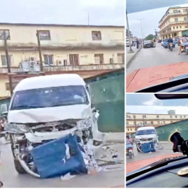 Accidente de tránsito en La Habana.   Un accidente de tránsito ocurrió hoy en la tarde en la Intersección de Vía Blanca y Fabrica, en el Capitalino municipio de 10 de Octubre.   Según testigos un van chocó con un auto, se desconocen las causas de la colisión.   (De la página Accidentes de buses y camiones)   © LaTijera