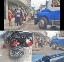 Accidente de tránsito en Holguín.   Un accidente de tránsito ocurrió hoy al mediodía en la Intersección de las calles Maximo Gómez y Frexes en la ciudad de Holguín.   Según testigos, el camión fue a girar, cuándo la motorina lo fue a adelantar por la derecha, cayendo en el punto ciego del camión.    El motorista fue trasladado al hospital, con lesiones en un pie.   (De la página Accidentes de buses y camiones)   © LaTijera