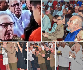 Reaparece Raúl Castro y sus súbditos aplauden como Focas al Nonagenario Dictador.   Durante la clausura anoche de la reunión anual de jefes y jefas de misiones diplomáticas del Régimen Castrista, reapareció el Dictador General de Ejército Raúl Castro Ruz junto al Títere Dictatorial Miguel Díaz-Canel y los máximos miembros de la Cúpula Dictatorial.   Mientras los Cubanos padecían una de las peores jornadas de Apagones, ellos en un Teatro Climatizado y bien iluminado, disfrutaron de una presentación del grupo infantil "La Colmenita".   © LaTijera