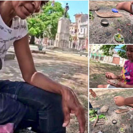 Juegos Rotos, la realidad de la niñez en Cuba. ¿Como juegan los niños en la Isla?   El turista se les acerca a la abuela y una niña sentadas en un parque en Cuba.   Les pregunta: ¿Que hacéis?    La señora le responde "Jugando a que está cocinando, para comer y eso, ahí"    En el banco no hay juguetes, solo piedras, tapas de pomos, hojas de los árboles, ilusiones, muchas ilusiones rotas, pues ni juguetes ni comida....   En la Cuba Dictatorial ni un triste juguete puede tener un niño, menos comida y necesidades básicas.   © LaTijera