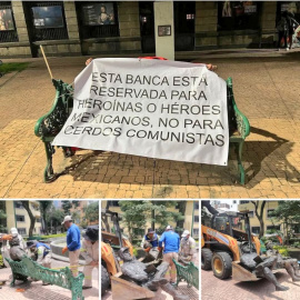 ¡FUERTE MENSAJE EN MÉXICO!   A pocas horas de que fueran retiradas las estatuas del Che Guevara y Fidel Castro en una plaza pública de México, apareció en el lugar una manta con un mensaje claro y contundente:   "ESTA BANCA ESTÁ RESERVADA PARA HEROÍNAS O HÉROES MEXICANOS, NO PARA CERDOS COMUNISTAS."   La manta fue colocada exactamente donde antes se erguían las figuras de los símbolos del comunismo castrista, provocando revuelo en redes y dividiendo opiniones.   ¿Y tú qué piensas? ¿Estás de acuerdo con el mensaje o te parece una falta de respeto?   ¡Opina! Porque aquí el pueblo sí tiene voz.   #LaTijeraNews #FidelCastro #CheGuevara #FueraComunismo #MéxicoLibre #CubaLibre #Anticomunismo #EstatuasRetiradas #Libertad #NoAlComunismo #HéroesMexicanos #LaPlazaHabla #SOSCuba #VerdadesSinFiltro   © LaTijera
