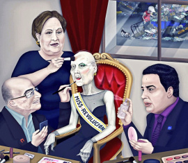 Tras 66 años de maquillajes, coloretes y creyones labiales rancios, la vieja momia, la Revolución, no da más, aún así, los maquilladores de la mentira, de la infamia y la desinformación, le dan sus últimos retoques para que el mundo piense que aún agonizando, sigue viva"   "Retrato de Cuba hoy", obra del Artista Gráfico Alejandro Daniel García.   #CubaSeMuere #RetratoDeCubaHoy #SOSCuba #PatriaYLibertad #Cuba #AlejandroDanielGarcia    © LaTijera