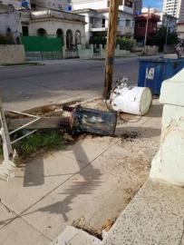 Se cayó un transformador de un poste del tendido eléctrico en El Vedado, La Habana.   En la tarde de ayer se cayó un transformador de la electricidad haciendo un terrible estruendo.   El hecho ocurrió en la calle 3ra e/ A y B en Capitalino Vedado, según reporte del Grupo "El Vedado de hoy".   Todo se cae en Oskuristan, menos lo que tiene que acabarse de caer, La Dictadura Castrista!!!!   © LaTijera