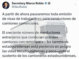 Última Hora: Gobierno de EE.UU. suspende visas para camioneros tras denuncia de "poner en peligro vidas"   El gobierno de Estados Unidos anunció el pasado jueves 21 de agosto de 2025 la suspensión inmediata de la emisión de visas de trabajo para conductores de camiones comerciales, argumentando que esta medida responde a una preocupante tendencia de seguridad y economía nacional.   "Con efecto inmediato, suspendemos la emisión de visas de trabajo para camioneros comerciales", declaró el secretario de Estado Marco Rubio en su cuenta de X, citando que el aumento de conductores extranjeros al volante de grandes tractocamiones está "poniendo en peligro la vida de los estadounidenses" y socavando el empleo de camioneros norteamericanos .   Este anuncio forma parte de una ola de acciones más amplias del gobierno actual para controlar la inmigración y priorizar la seguridad vial en el país .   #LaTijeraNews #EEUU #Visas #Camioneros #SeguridadVial #Inmigración #MarcoRubio #NoticiasEEUU #VisasSuspendidas #ProtecciónLaboral   © LaTijera