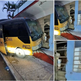Accidente ocurrido ayer en La Habana.   Un Accidente ocurrió ayer en Ave 41 e/ 84 y 84A, en el municipio capitalino de Playa.   Según testigos el ómnibus lo estaban remolcando y se partió la barra fija.    Afortunadamente solo daños materiales al transporte y al inmueble contra el que se impactó (Pizzería del Lido).   © LaTijera
