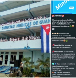 Obligan a estudiantes de Medicina en Guantánamo a recoger café.   La Facultad de Ciencias Médicas de Guantánamo emitió un comunicado en redes sociales en el que ordena con carácter obligatorio a sus estudiantes incorporarse a la recogida de café en el campo.   La convocatoria está dirigida a los estudiantes de primer año de todas las carreras, quienes deberán presentarse este 1 de octubre a la 1:00 PM en la entrada del 6 Norte de la universidad.   La tarea, según la nota, tendrá una duración de una semana, en la que los estudiantes deberán llevar el equipamiento básico indispensable para labores agrícolas.   La medida ha generado polémica, pues la universidad exige labores agrícolas forzadas a jóvenes que deberían estar dedicados a su formación académica.   #Cuba #Guantánamo #Estudiantes #RecogidaDeCafé #Medicina #UniversidadCubana #EducaciónCuba #LaTijeraNews   © LaTijera