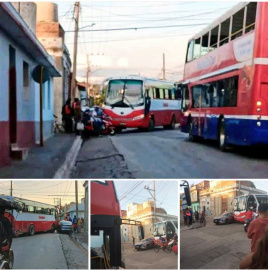 Accidente de Tránsito en Trinidad, Sancti Spiritus.   Un Accidente de Tránsito ocurrió ayer en la tarde en la Intersección de las calles Frank País (Carmen) y Camilo Cienfuegos (Santo Domingo) en la ciudad de Trinidad.   En el lugar también conocido como "La Esquina del Marino" una Guagua de TRANSMETRO fue a doblar derecha con su intermitente puesto hacia esa dirección, pero mientras hacia la maniobra, un auto de Turismo la intentó rebasar pensando que le daba tiempo y fue impactado por esta.   Afortunadamente no hubo lesionados, solo daños materiales.   ©LaTijera