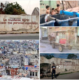 Los "logros" de la Robo-ilusión.   En un muro roído y desgastado por los rigores de 66 años de dictadura, un mural irónicamente proclama:   "La Revolución logra cosas que parecían imposibles"   Lo que no dice es que esos "logros" han venido acompañados de la destrucción sistemática de la industria, el colapso de la infraestructura, la devastación de viviendas, la pérdida de vidas y oportunidades, y un país sumido en apagones constantes, escasez de alimentos, hambre, falta de medicamentos, insalubridad, inseguridad ciudadana, miseria y represión.   Mientras el mural intenta vender una ilusión, la realidad es clara: la Revolución ha dejado un país en ruinas, donde la supervivencia diaria es un desafío y la esperanza parece un lujo.   Los cubanos siguen luchando, resistiendo y recordando que los verdaderos logros no se miden en propaganda, sino en la libertad, dignidad y calidad de vida de su gente.   #CubaEnCrisis #DictaduraCubana #RoboIlusion #66AñosDeFracaso #Apagones #Escasez #Hambre #FaltaDeMedicamentos #Insalubridad #InseguridadCiudadana #Miseria #Represión #CubanosResistiendo #LaVerdadSobreLaRevolución   © LaTijera