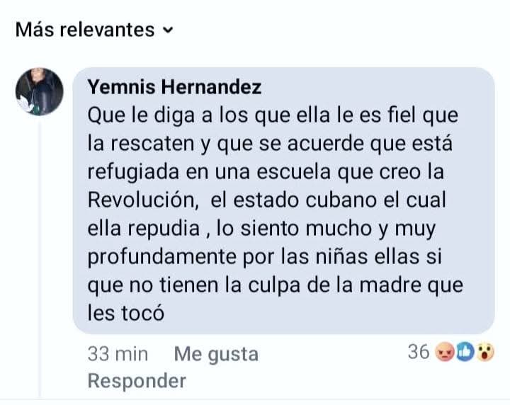 INDIGNANTE: CASTRISTA INSENSIBLE SE BURLA DE MADRE OPOSITORA Y SUS HIJAS EN TECHO DE ESCUELA.   Tras el paso del Huracán Melissa, la opositora Eliannis Villavicencio Rodríguez permanece desde hace tres días junto a sus hijas menores en el techo de una escuela en Río Cauto, Granma.   Una militante del PCC en Las Tunas, Yemnis Hernández Enamorado, escribió en redes:   "Que le diga a los que ella le es fiel que la rescaten y que se acuerde que está refugiada en una escuela que creo la Revolución, el estado cubano el cual ella repudia. Lo siento mucho y muy profundamente por las niñas, ellas sí que no tienen la culpa de la madre que les tocó"   Pero eso no es todo: Yemnis es usuaria de una página de búsqueda de parejas en Miami, buscando salir de Cuba mientras ataca a opositores y se burla de la desgracia ajena.   ¿Hasta cuándo este descaro y falta de humanidad?   #Cuba #Granma #RíoCauto #OposiciónCubana #HuracánMelissa #DerechosHumanos #MadresCubanas #JusticiaYA #LaTijeraNews #CrisisCubana #IndignaciónCubana   © LaTijera